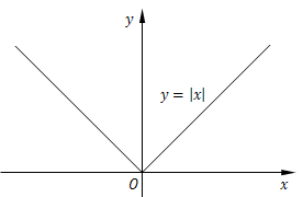 \[y = |x| = \left\{ \begin{gathered} {-}x,x < 0, \hfill \\ x,x \geqslant 0 \hfill \\ \end{gathered} \right.\]